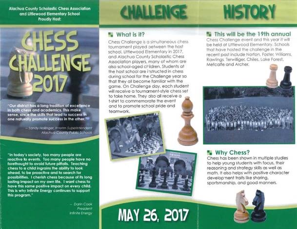 GAINESVILLE, Fla.— For the fourth year in a row, The Collier Companies will help sponsor the annual Chess Challenge. This year, they will contribute $2,000 as a “Grandmaster” Sponsor for the annual event. The Alachua County Scholastic Chess Association hosts the annual Chess Challenge. This year’s challenge will take place May 26 at Littlewood Elementary …